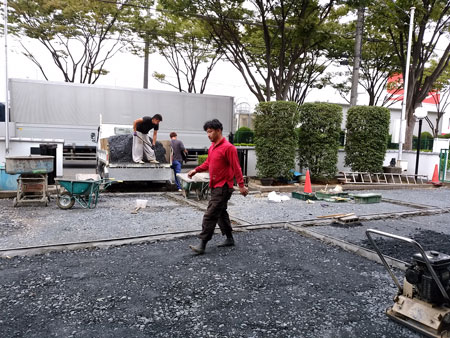 小木人形も10月20日までには、駐車所整備完了のため工事の職人さんたちに頑張っていただいています。