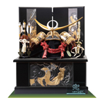 コンパクト人気名武将の兜収納飾りで端午の節句のお祝いです。